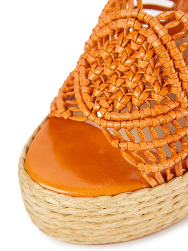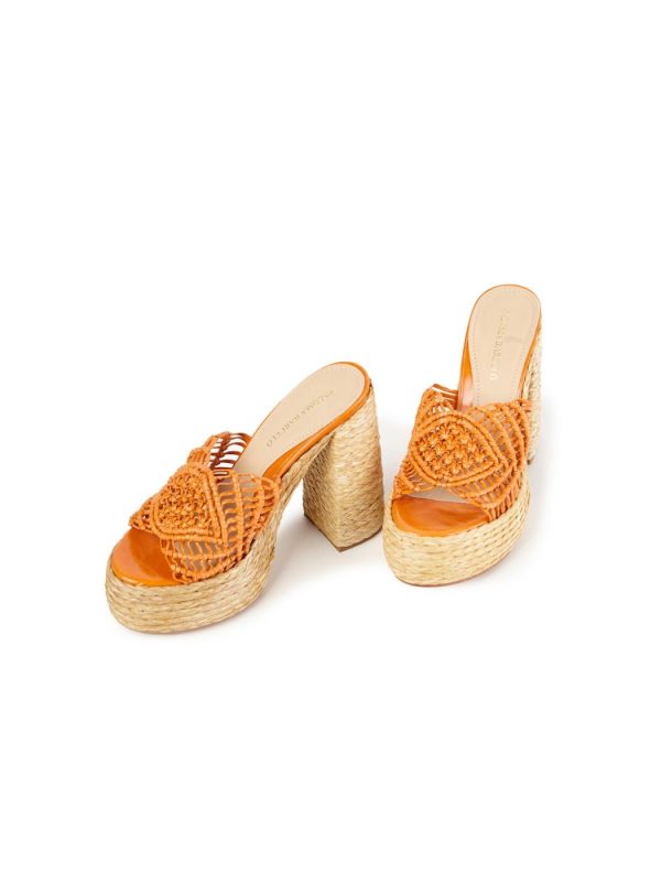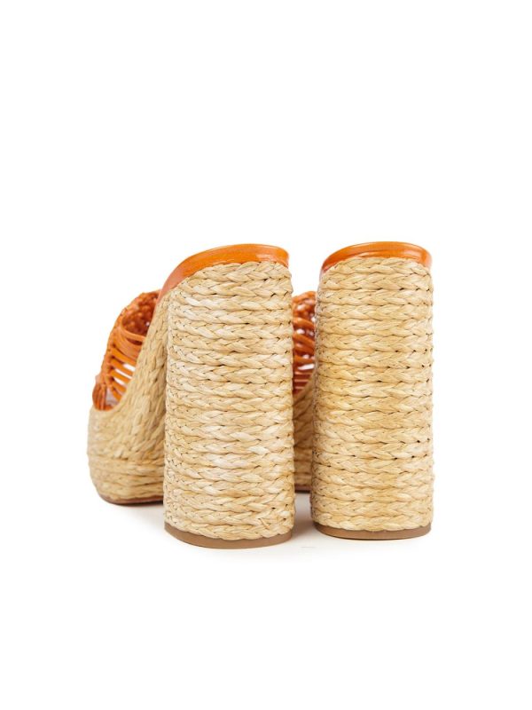 Luxurious, handmade Macramé-braided leather sandals with a platform and jute-wrapped heel. Crafted from 100% fine leather, these exquisite sandals elevate your style with artisanal details and a sophisticated design.