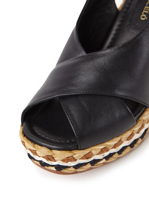Introducing the Solene Baby Calf Black sandals by Paloma Barceló, designed for the Spring Summer 25 collection. These stylish platform sandals feature a sleek black leather construction, ensuring both durability and elegance. The unique velcro closure provides a secure fit while adding a modern touch to the classic design. Perfect for elevating your summer wardrobe, these high sandals combine comfort and sophistication, making them an ideal choice for any occasion. Experience the luxury of 100% leather with the Solene Baby Calf sandals, where fashion meets functionality.