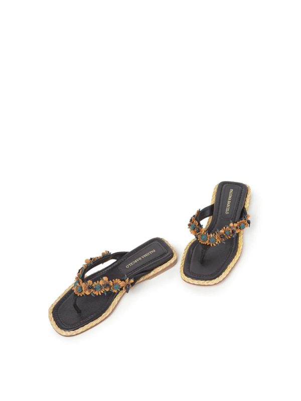 Introducing the Amapola Kid Suede Sandal in black by Paloma Barceló. Crafted from 100% leather, this flat sandal combines style and comfort for the Spring Summer 25 collection. The sleek design features a minimalist aesthetic, making it a versatile addition to any wardrobe. Perfect for casual outings or dressing up for a special occasion, this sandal is a must-have for any fashion-forward woman. Enjoy the luxurious feel of high-quality materials while stepping out in elegance.