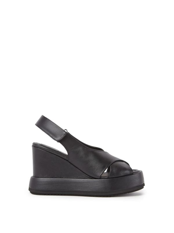 The CORA BABY CALF BLACK is the perfect sandal for any occasion. Made from 100% leather, this sandal offers both comfort and style. The platform wedge provides extra height while the buckle closure ensures a secure fit. The track sole adds a touch of modern trend. Elevate your look with these chic sandals.