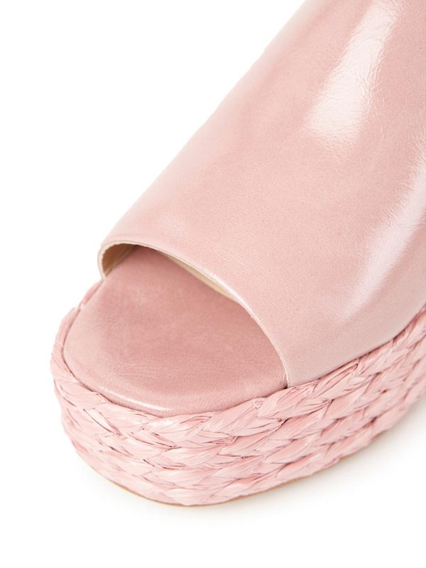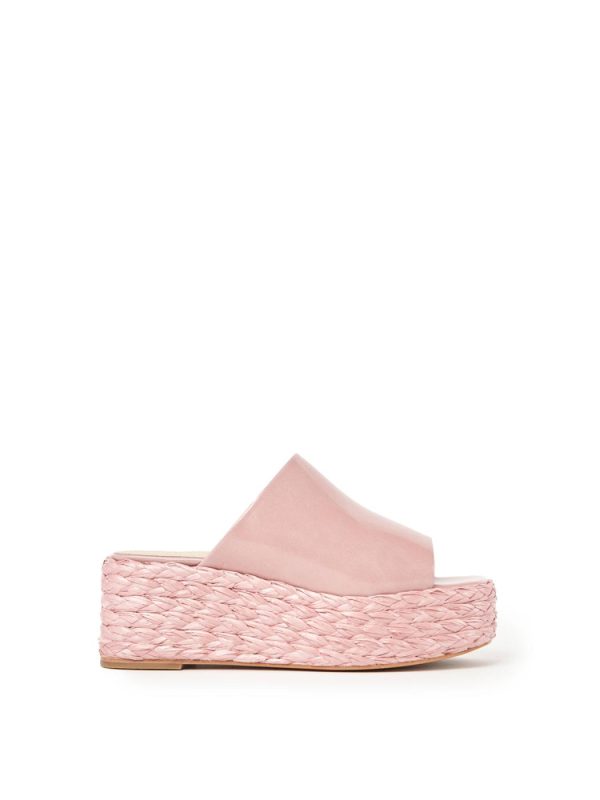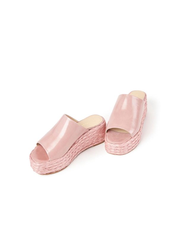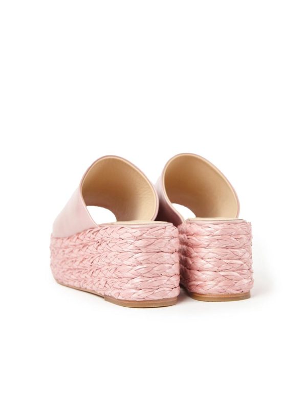 Indulge in luxury with the Sandalia leather platform, adorned with a matching raffia finish. The sole is crafted from premium leather and includes a non-slip component for added security.